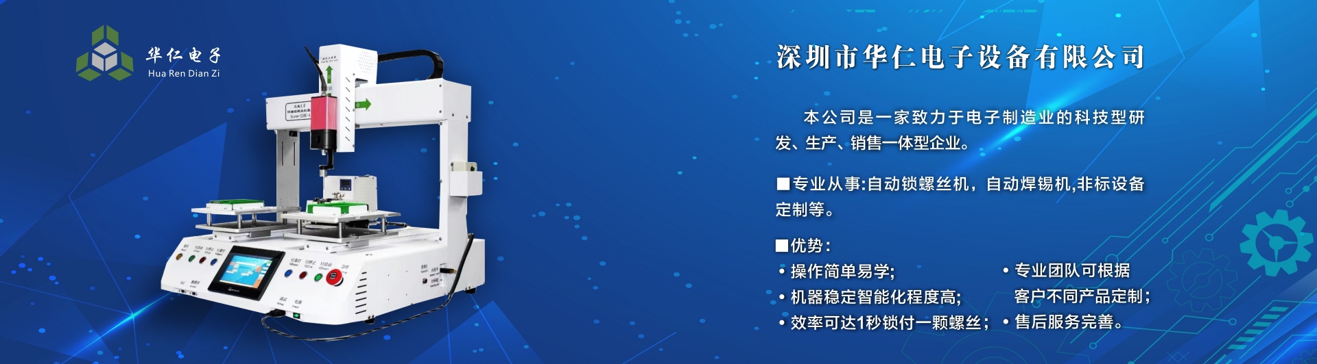 深圳市華仁電子設(shè)備有限公司是一家致力于電子制造業(yè)周邊設(shè)備的科技型研發(fā)、生產(chǎn)、銷售一體的企業(yè),專業(yè)從事:自動(dòng)鎖螺絲機(jī);自動(dòng)焊錫機(jī);非標(biāo)設(shè)備定制機(jī)等,公司長期以來在行業(yè)中積累了豐富的經(jīng)驗(yàn),擁有專業(yè)的研發(fā)、技術(shù)、銷售支持工程團(tuán)隊(duì)、各高級(jí)技術(shù)人才為客戶提供優(yōu)質(zhì)產(chǎn)品和服務(wù),同時(shí)不斷吸取國內(nèi)外先進(jìn)技術(shù),更準(zhǔn)確及時(shí)地為客戶提供優(yōu)質(zhì),性價(jià)比高的產(chǎn)品、公司以專業(yè)的售前、售中、售后服務(wù)贏得了客戶的信賴和好評(píng),為客戶提供先進(jìn)自動(dòng)化設(shè)備一體式解決方案、